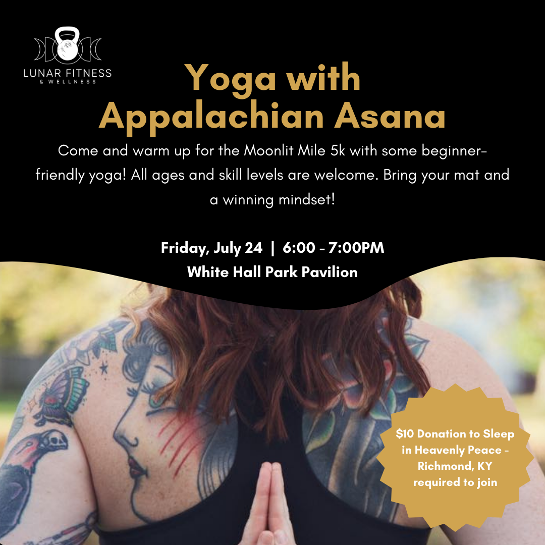 Come and warm up for the Moonlit Mile 5k with some beginner-friendly yoga! All ages and skill levels are welcome. Bring your mat and a winning mindset!